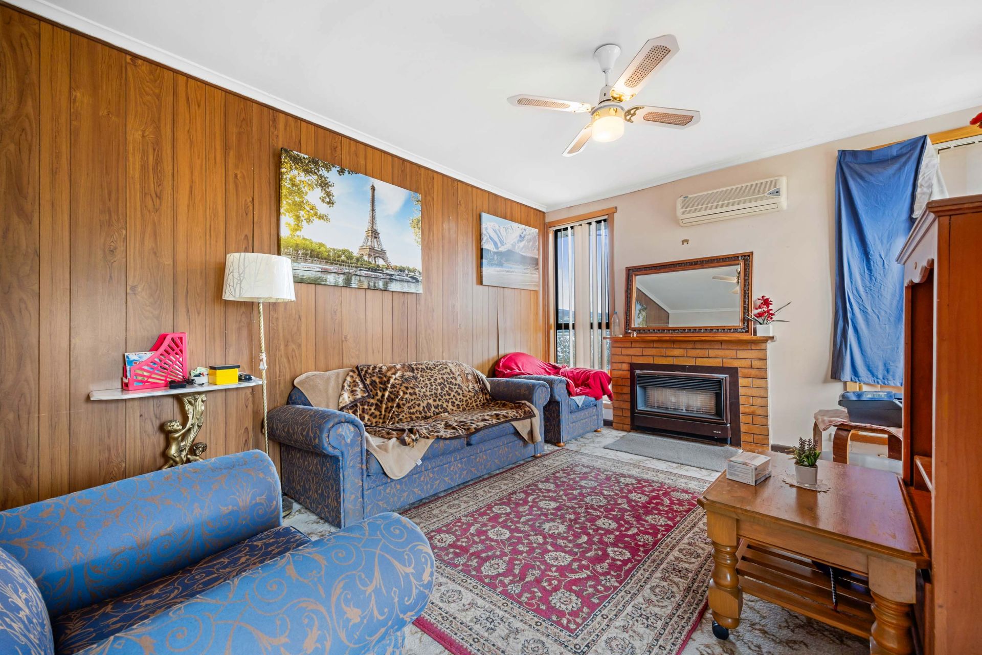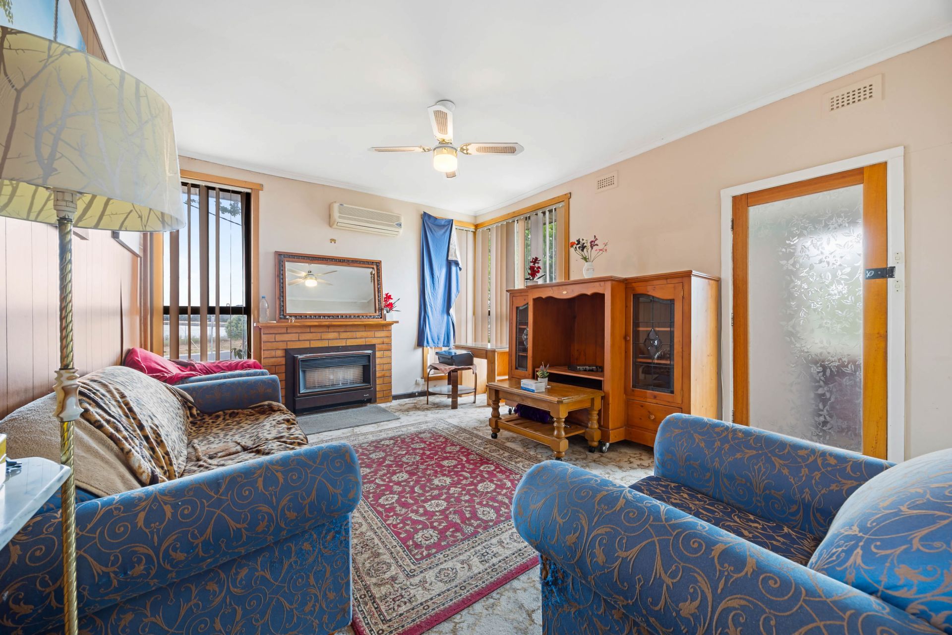 The cosy lounge features a charming fireplace, gas heating, and a split system for heating and cooling, creating the perfect space to unwind. The light-filled kitchen is well-appointed with a gas stovetop, ample cupboard space, and room for your dining table, making it both functional and inviting. The three generous bedrooms are supported by a main family bathroom with a shower and a separate toilet.