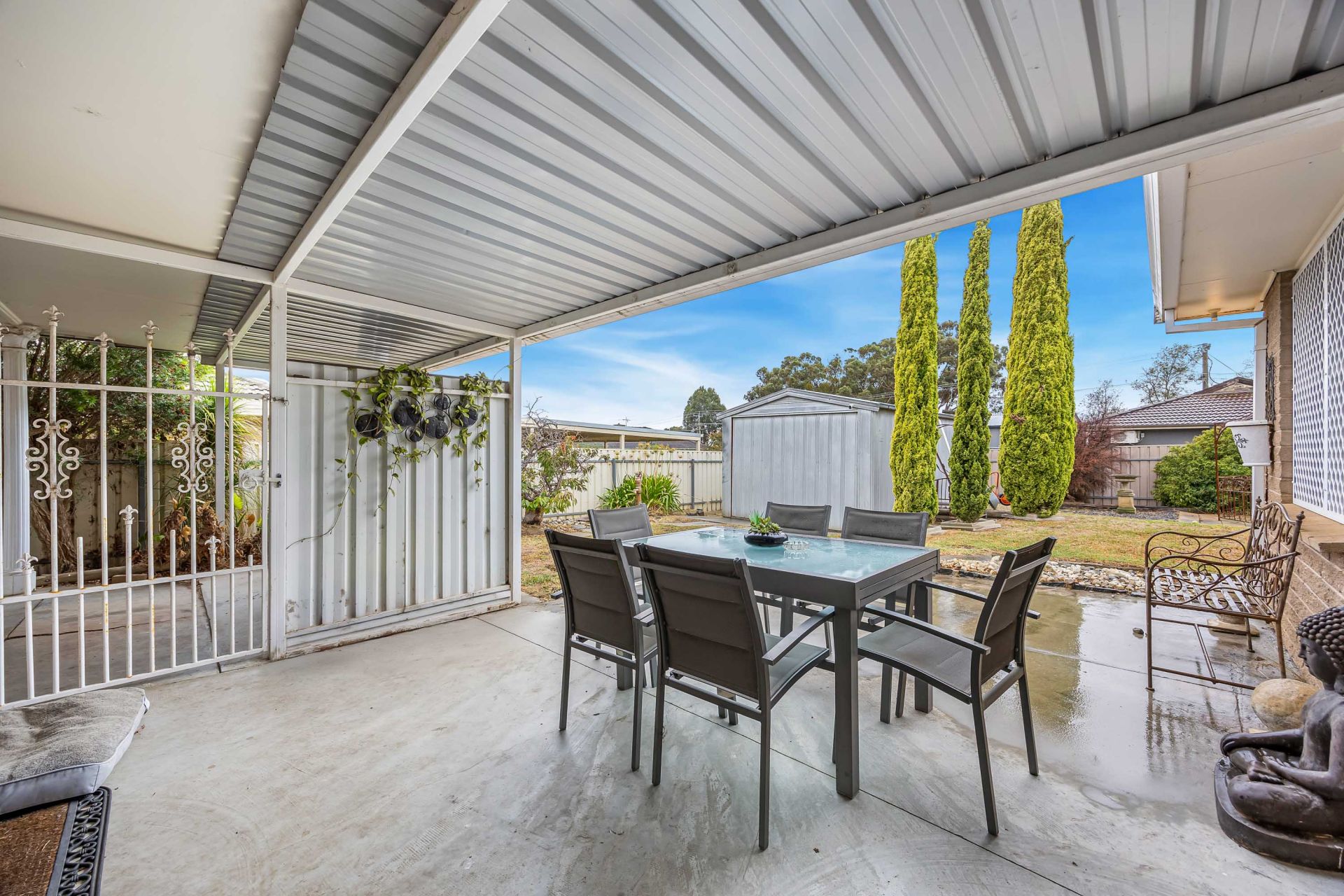 Outside, a covered entertaining area extends from the second living space and dining room, making it the perfect spot to host guests. The low-maintenance garden, carport, and a generously sized shed provide both practicality and convenience.