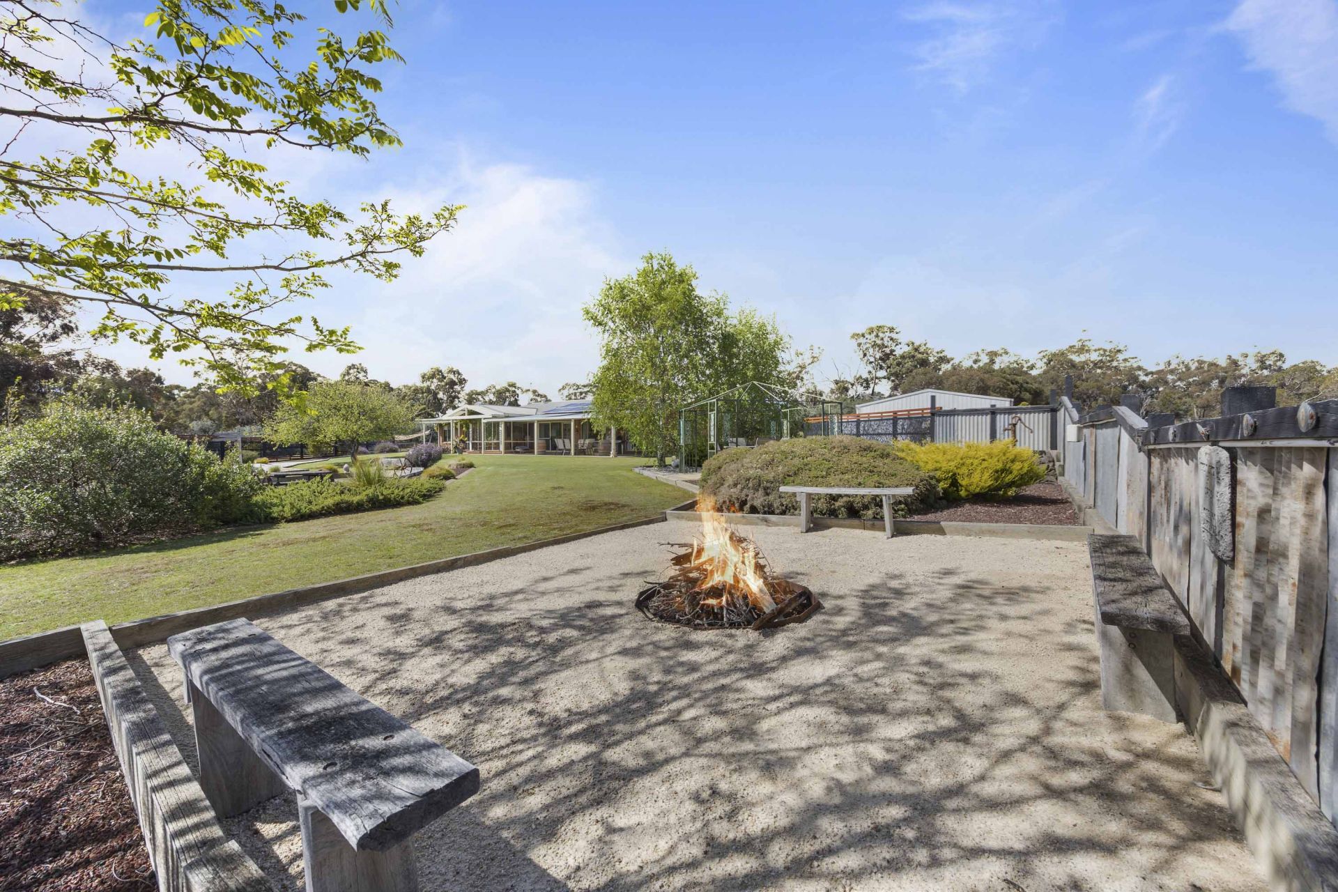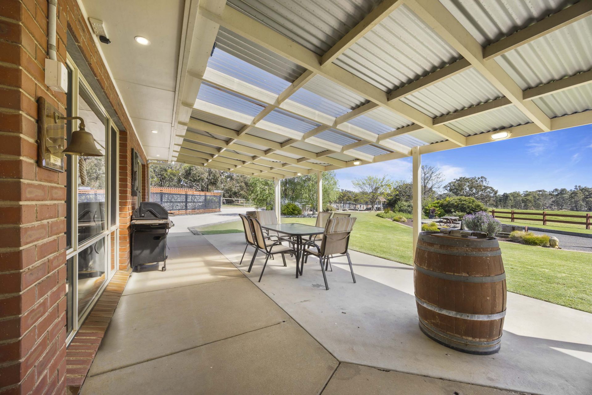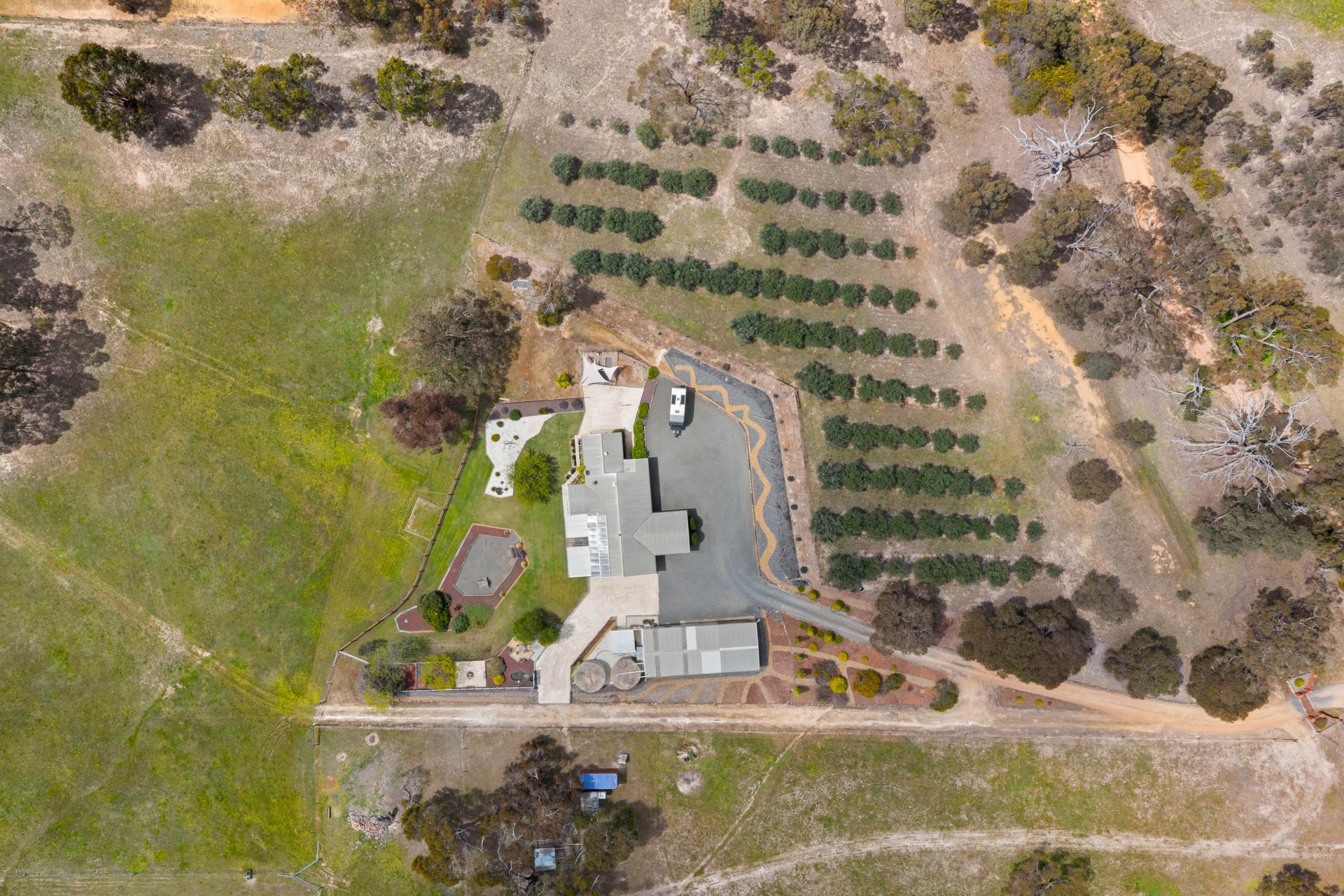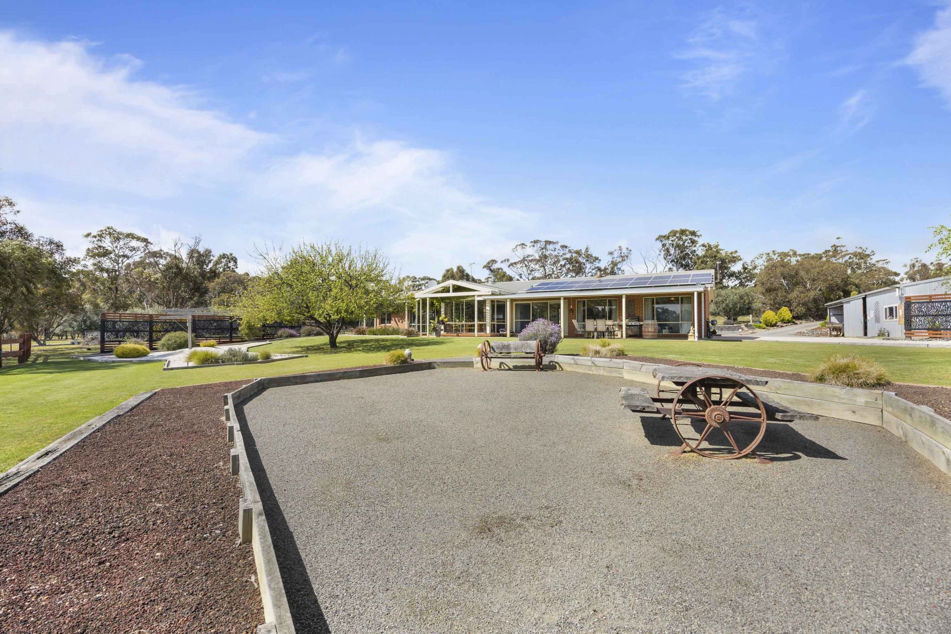 Outside, the home is surrounded by immaculate, landscaped gardens that create a peaceful and private setting. The property is well laid out with fenced paddocks, ideal for running stock, horses, or simply enjoying open space for leisure. A well-established olive tree plantation adds both character and potential, while the extensive shedding provides ample space for tools, equipment, vehicles, or workshop use.