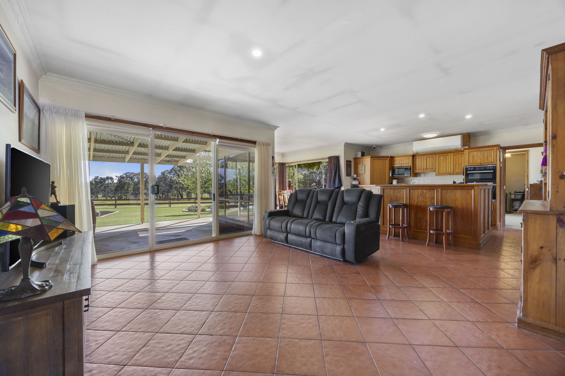 Two large living areas provide flexibility for everyday living and entertaining - with an open-plan kitchen, dining, and family zone that enjoys sweeping views across the property, as well as a separate lounge or rumpus room perfect for relaxing or accommodating a growing family.